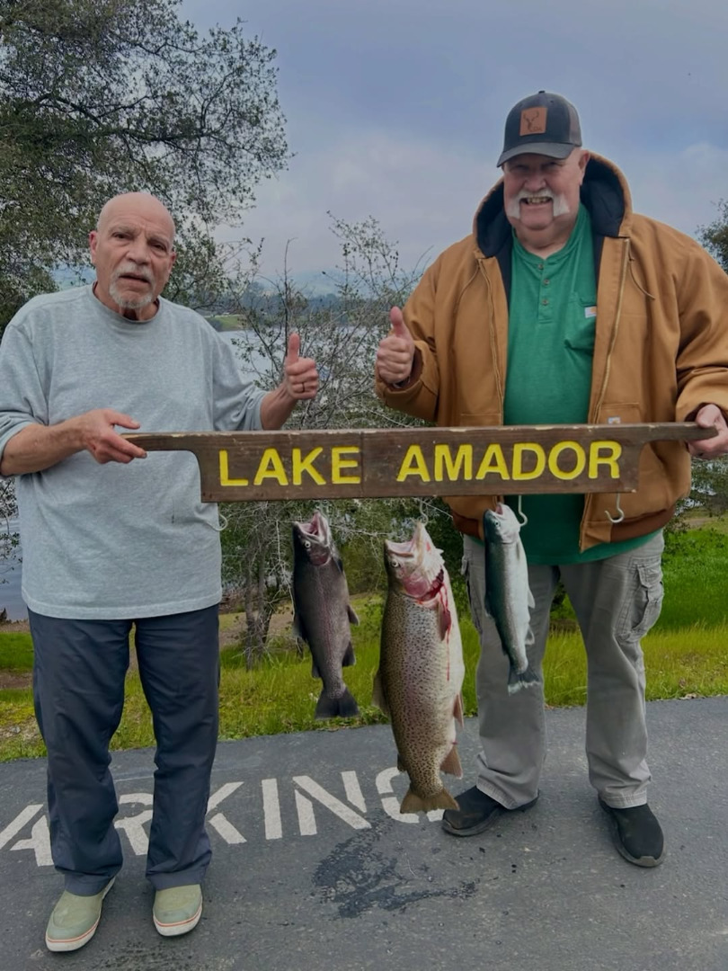 Jamie and Alex caught this 6lbs. 6oz. rainbow trout and 6lbs. Lightning trout on Nov. 24th, 2023. They both bit on a pink mousetail at the end of fisherman's row. 7yr old Alex reeled in the rainbow trout by himself.