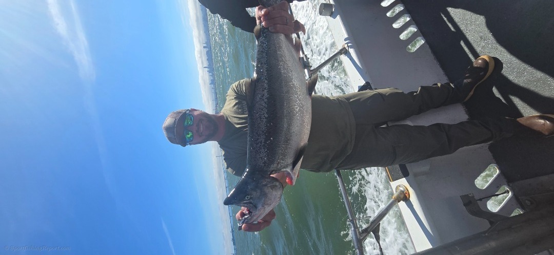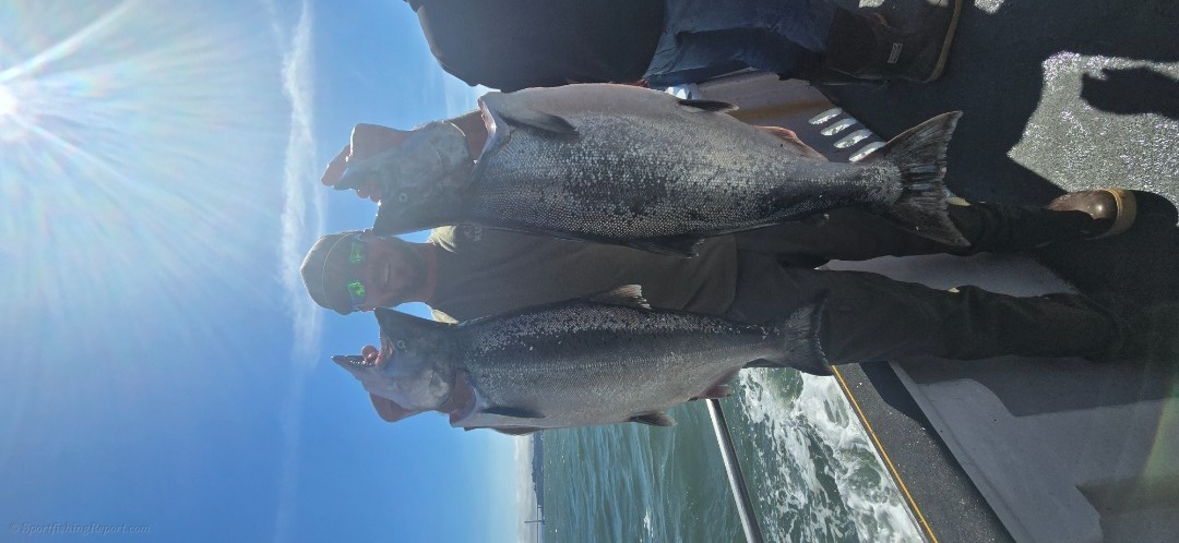 What an incredible day on the water! Our group of 21 anglers hit their salmon limits, reeling in some hefty, hard-fighting fish. Great times, great people, and a boat full of unforgettable memories!”