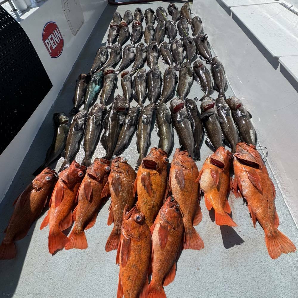 Lights out down south today. We opted for a coastal run with the windy offshore conditions. Found some wide open ling cod and big reds. Weather looks good for tomorrow offshore and we have lots of room on the CD2 for an islands trip.