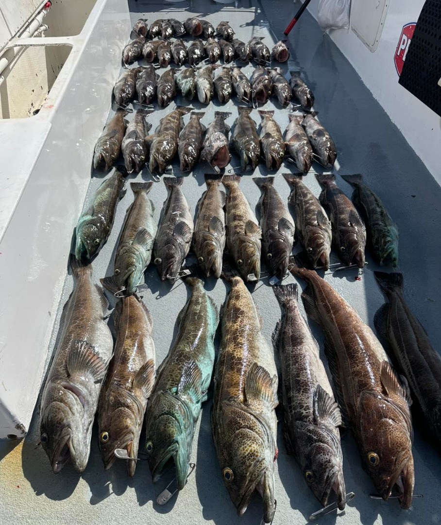The islands were lights out again today. We had flat weather and plenty of whales to look at as well as some wide open rockfish and lingcod action.