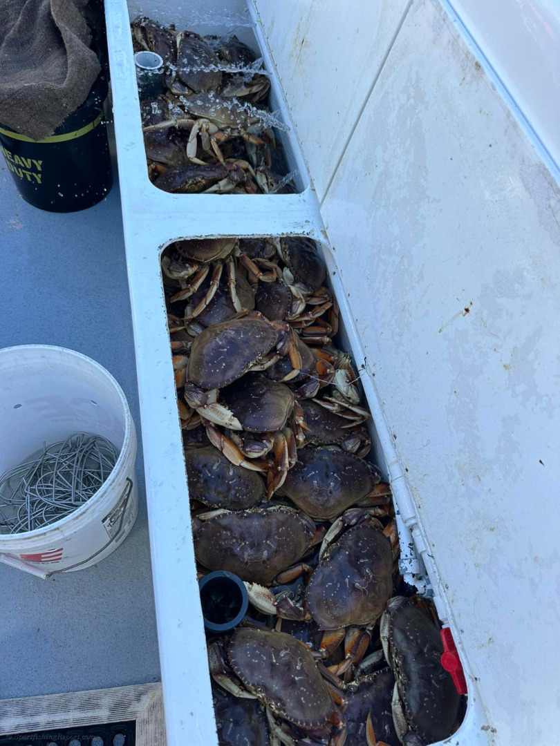 Lights out fishing for both crab and rockfish today. The seas were flat calm and everything was biting well enough for early limits.