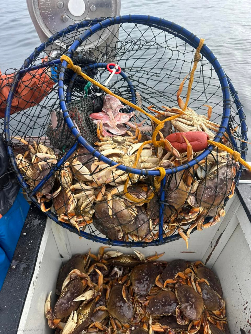 Quick and easy limits of quality rockfish and Dungeness crab at the islands today. Both boats were done early.