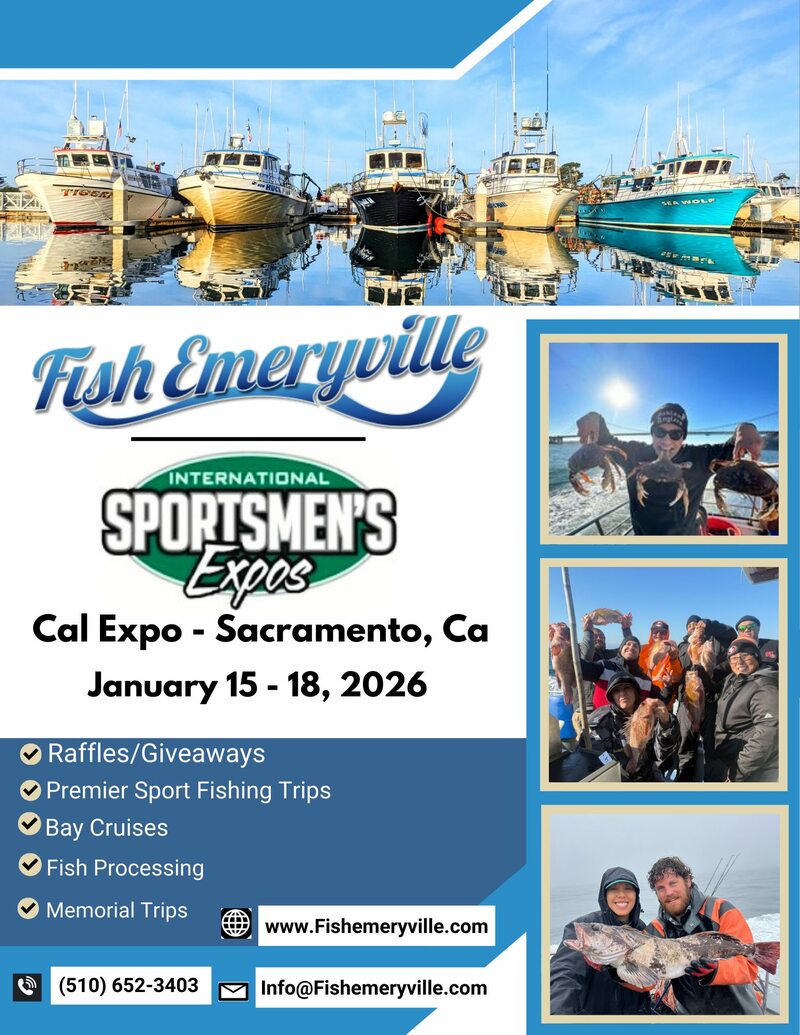 *For 24/7 Reservations, Scheduling and Fish Reports, please visit us at www.Fishemeryville.com or give us a call at (510) 652-3403!
