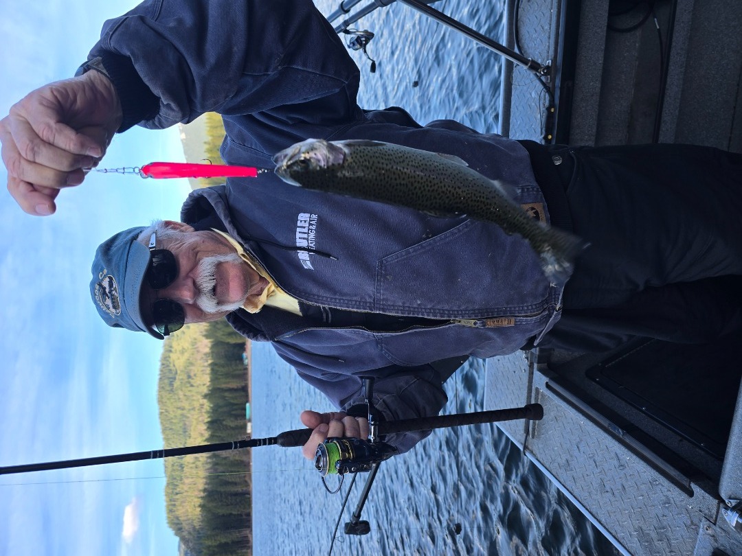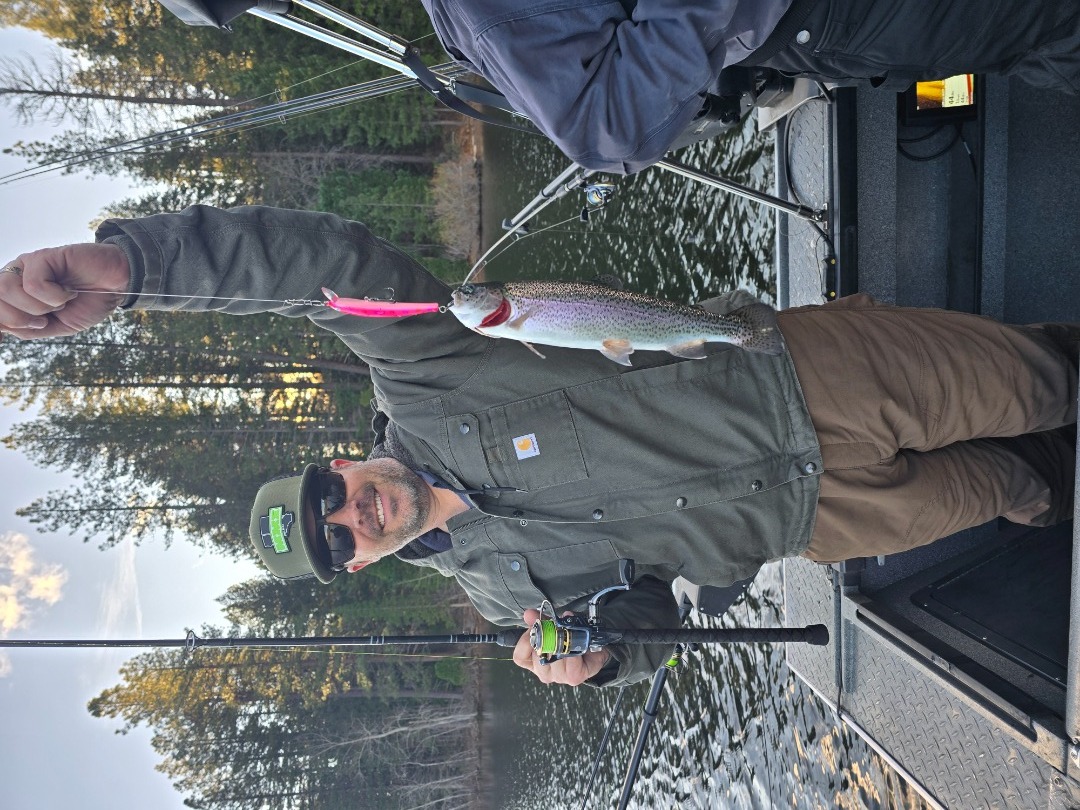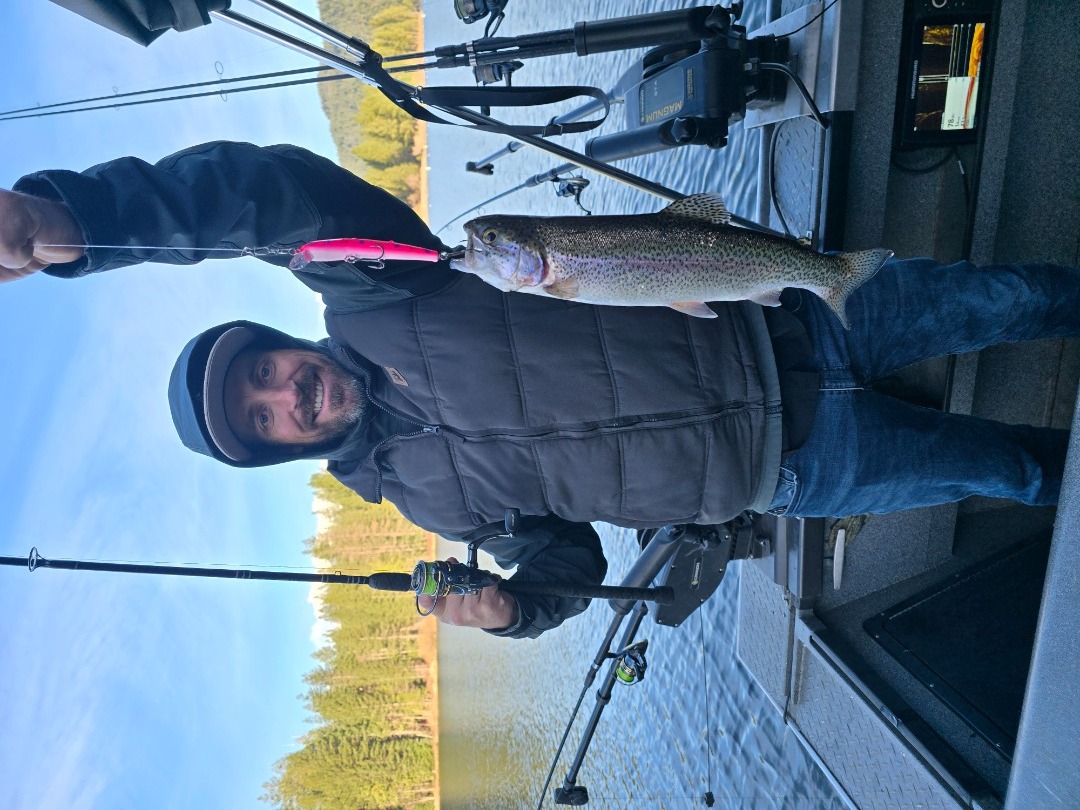 Pink was the hot color, I tried other methods but trolling fast around 2.5 to 3.5 mph with the stick baits was what got the trout to bite. We caught fish up to 2.5 pounds. We had quite a few fish hit hard but they didn't stick. That's fishing, but the action was great. Weather couldn't have been much better except for the crazy winds at times, but that didnt hinder the fishing.