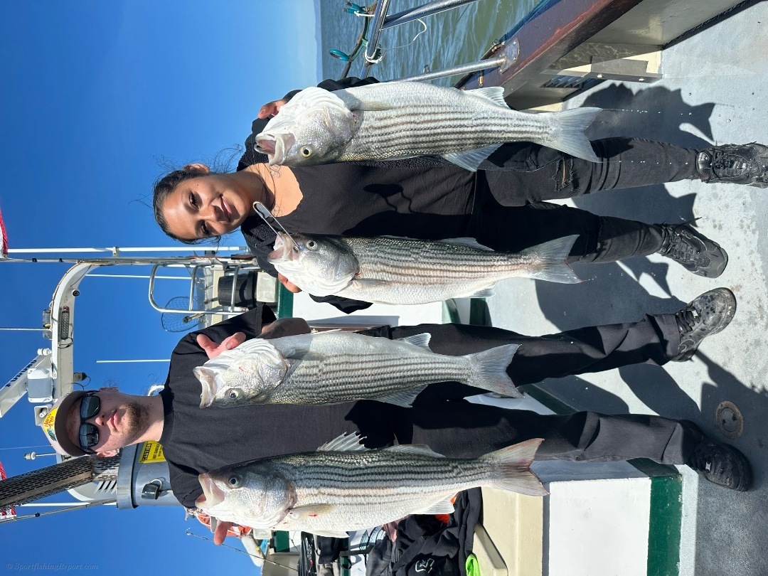 3/25/26. LIMITS OF QUALITY BASS AGAIN!!! Today we had a light load and finished up with 9 LIMITS(18) of striped bass & 2 halibut!!! We have lots of room FRIDAY & SUNDAY for a full day trip. Make your reservation on our website at www.lovelymartha.com