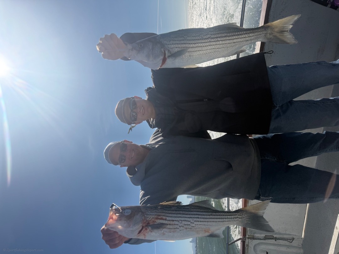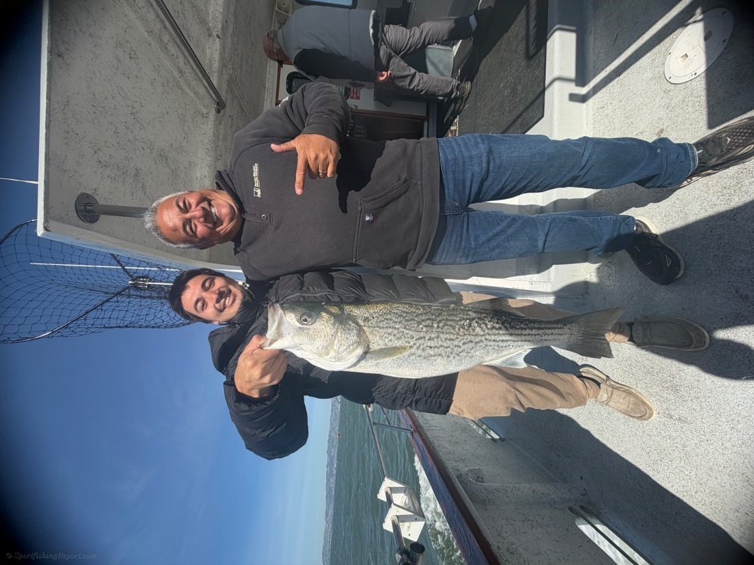 We ended the day with 10 limits of striped bass, plus a few for the crew—for a total of 23 striped bass and one California halibut! 🐟💪