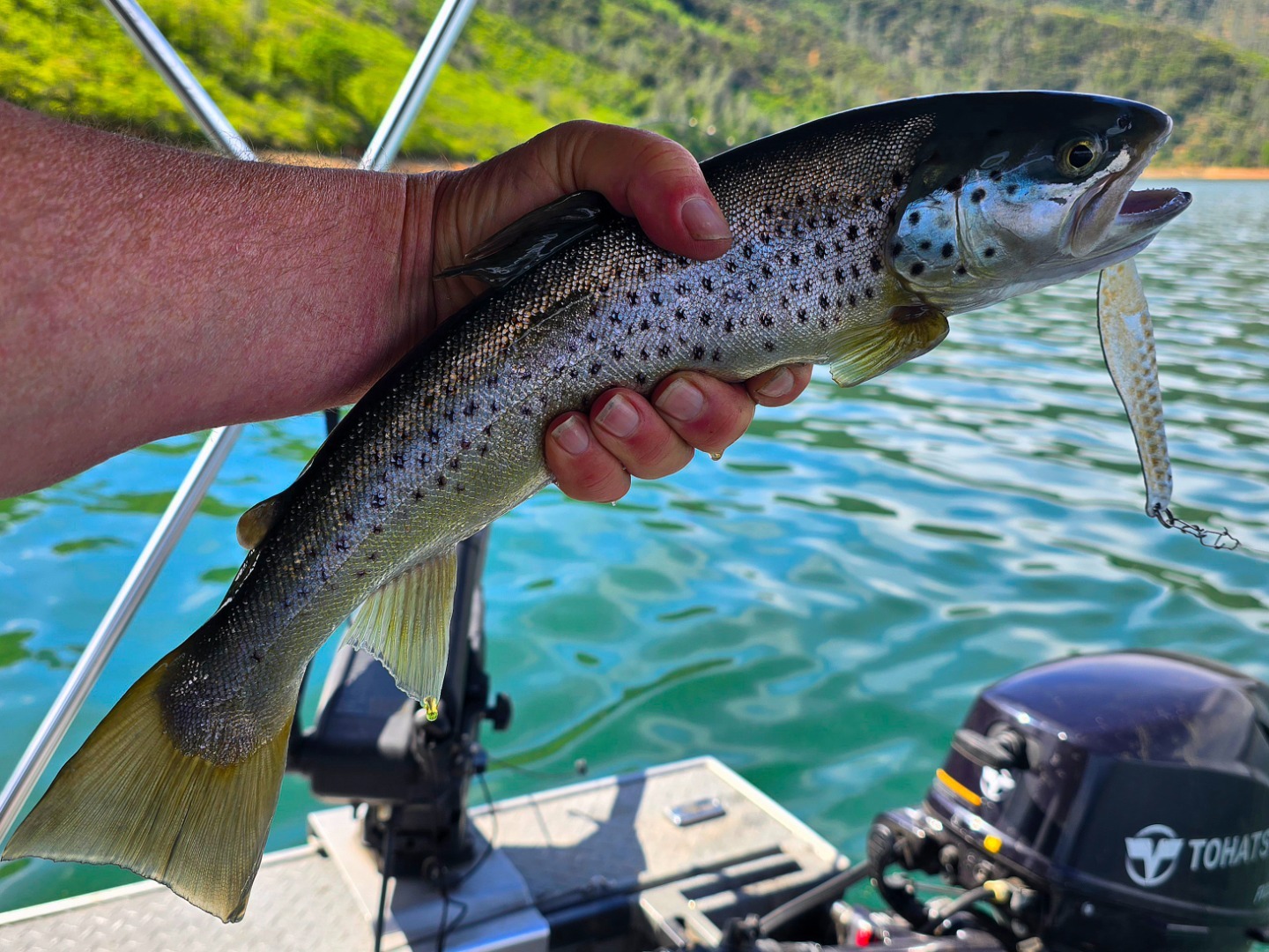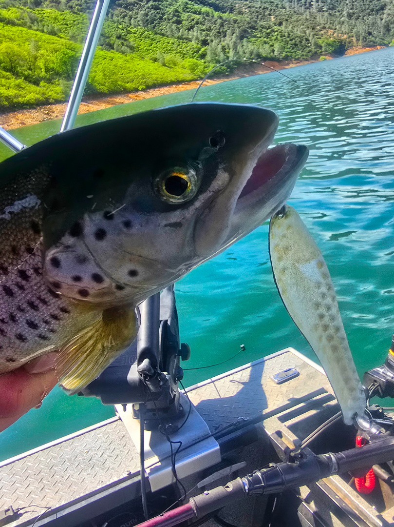 Shasta Lake brown and rainbow trout fishing has been up and down so far this spring. I have been all over the lake the past few weeks and the trout bite has been the same, no spot has been hotter than another. I have been trolling a lot of water for my fish. Yesterday, was the best Brown of the year so far, a 6 pound 7 ounce piggy, caught and released while trolling a trout plug at 30 feet and 2.7 mph. Caught 4 more Browns 2 on spoons an 2 on plugs. The fish quality has been getting better. Fishing will continue to improve as the fish head to main bodies of lake to feed on shad.
