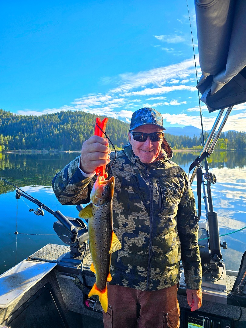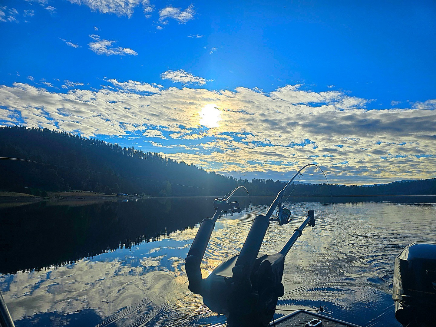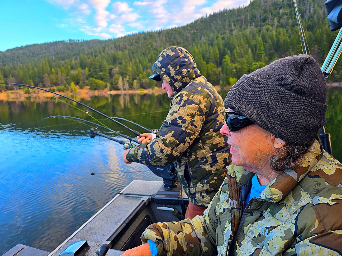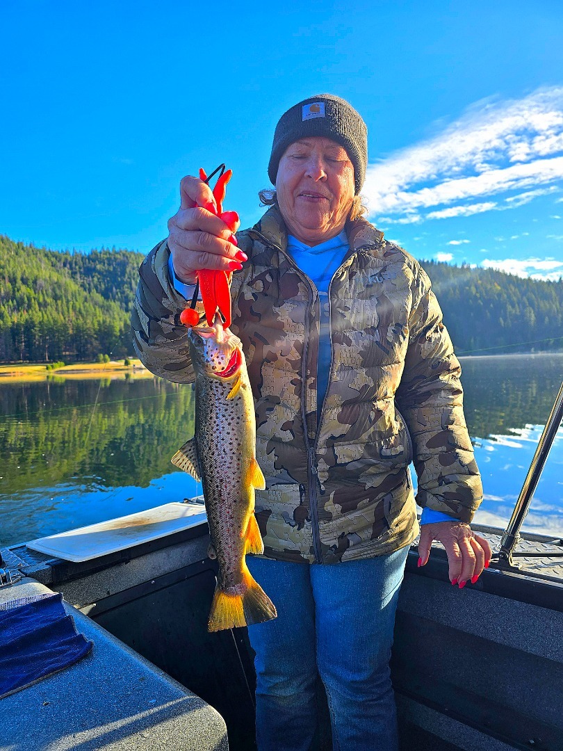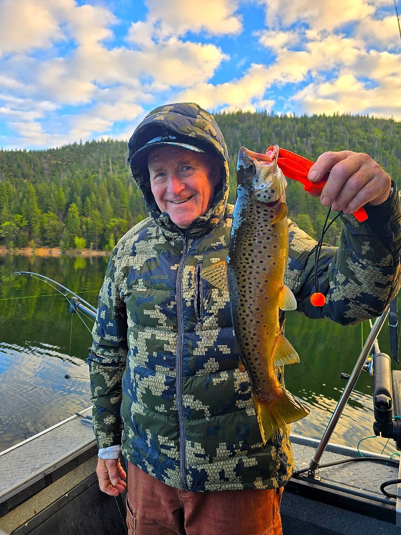 Lake Siskiyou is in fine spring form beautiful weather and biting trout. Day 1 with LaVerna and Rusty couldn't have gone much better. The action was fast and furious the moment I put the plugs in the water. We had 3 trout in the box in 10 minutes, and that was how it went most of the morning. The bite slowed around noon but we still had good action it just wasn't one after another lol.