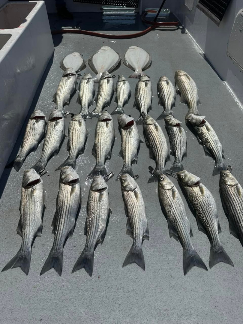 Solid bay fishing with beautiful weather today. Easy limits if striped bass adding a handful of halibut.