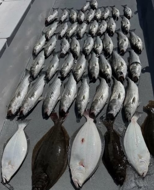 The bite was as good as it’s been since the start of the season today. Striped bass were lights out and a few more halibut showed up! We have plenty of room tomorrow Sunday and Monday.