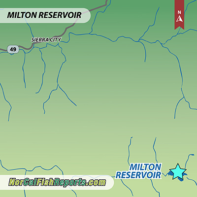 Milton Lake, CA (Milton Reservoir, Nevada County), is a high-elevation Sierra fishery primarily supporting rainbow and brown trout. While specific recent reports are limited, optimal angling is typically during cooler months and periods of stable water levels. Effective methods include trolling with spoons or dodgers for cruising trout, and casting small lures or bait from shore at accessible points. The lake's clear, cold waters often necessitate stealth and light tackle for wary trout. Anglers should monitor snowpack-dependent access roads and local regulations. This reservoir offers a tranquil trout fishing experience in a scenic mountain setting.